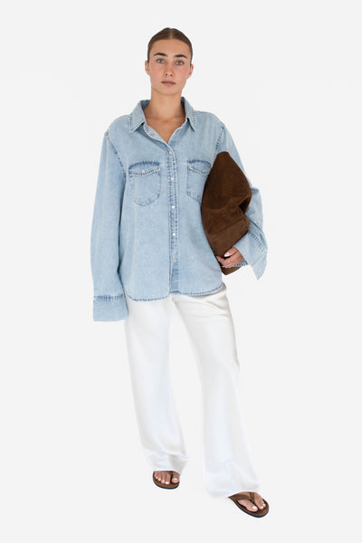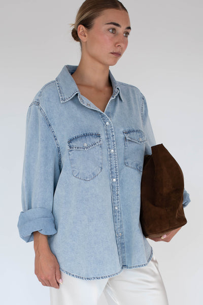 A boxy fit crafted from a deliciously soft and drapey cotton/lyocel blend. Providing an effortless look, this denim shirt will be a hero in your wardrobe. Size guide:S (6-10)M (10-12)L (14-16)